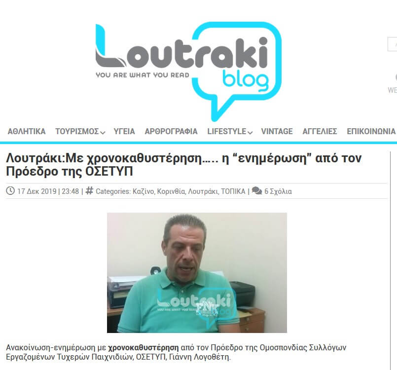Προς όλους τους συναδέλφους του καζίνο Λουτρακίου…